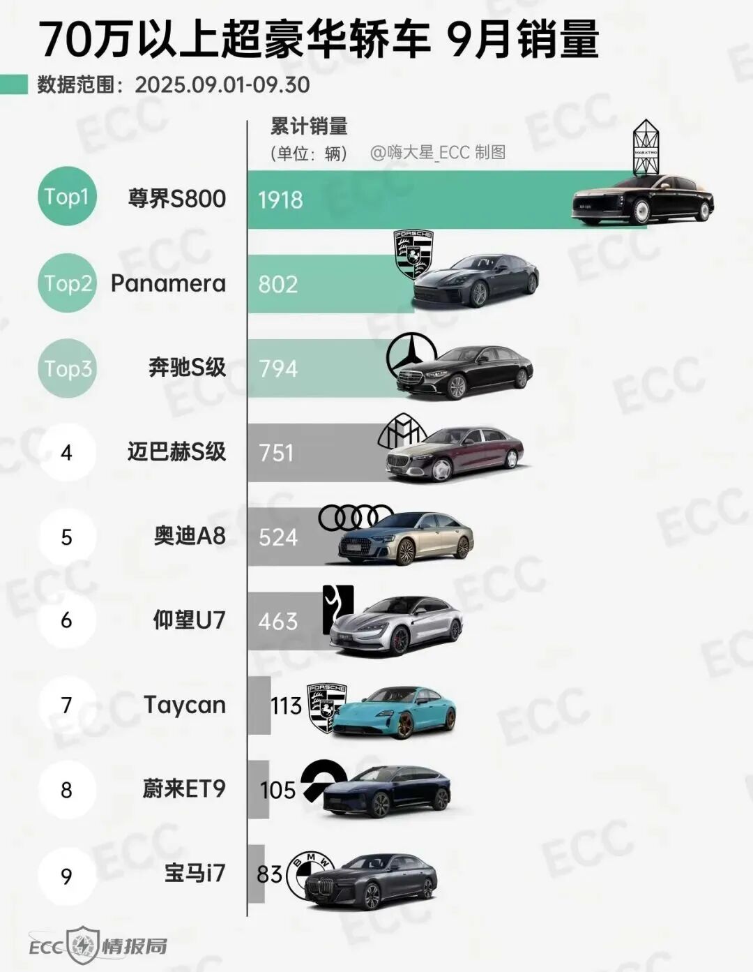 根据ECC情报局的数据,9月尊界S800的销量飙到了1918辆。