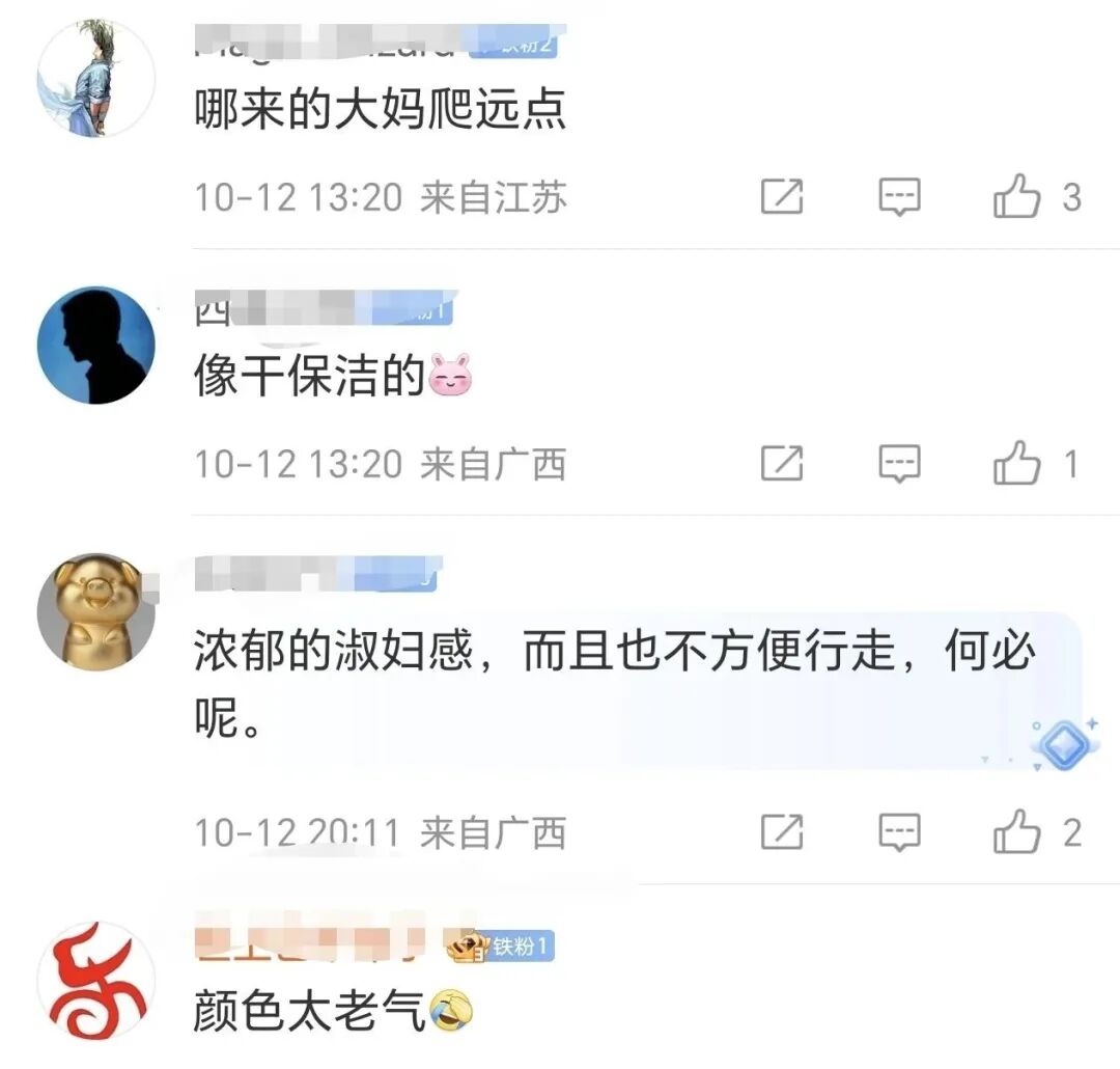 也有网友辣评“大妈、尼姑”“金牌月嫂服”“保洁服” 。