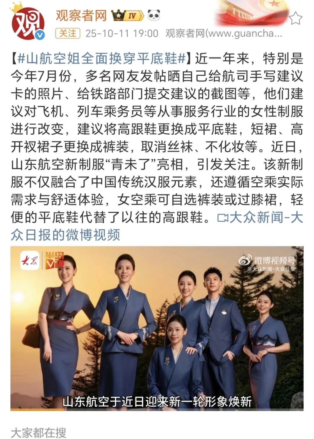 无独有偶,就在春秋航空因“空嫂”招聘引发热议的同时,山东航空也因空乘制服改革成为关注焦点。