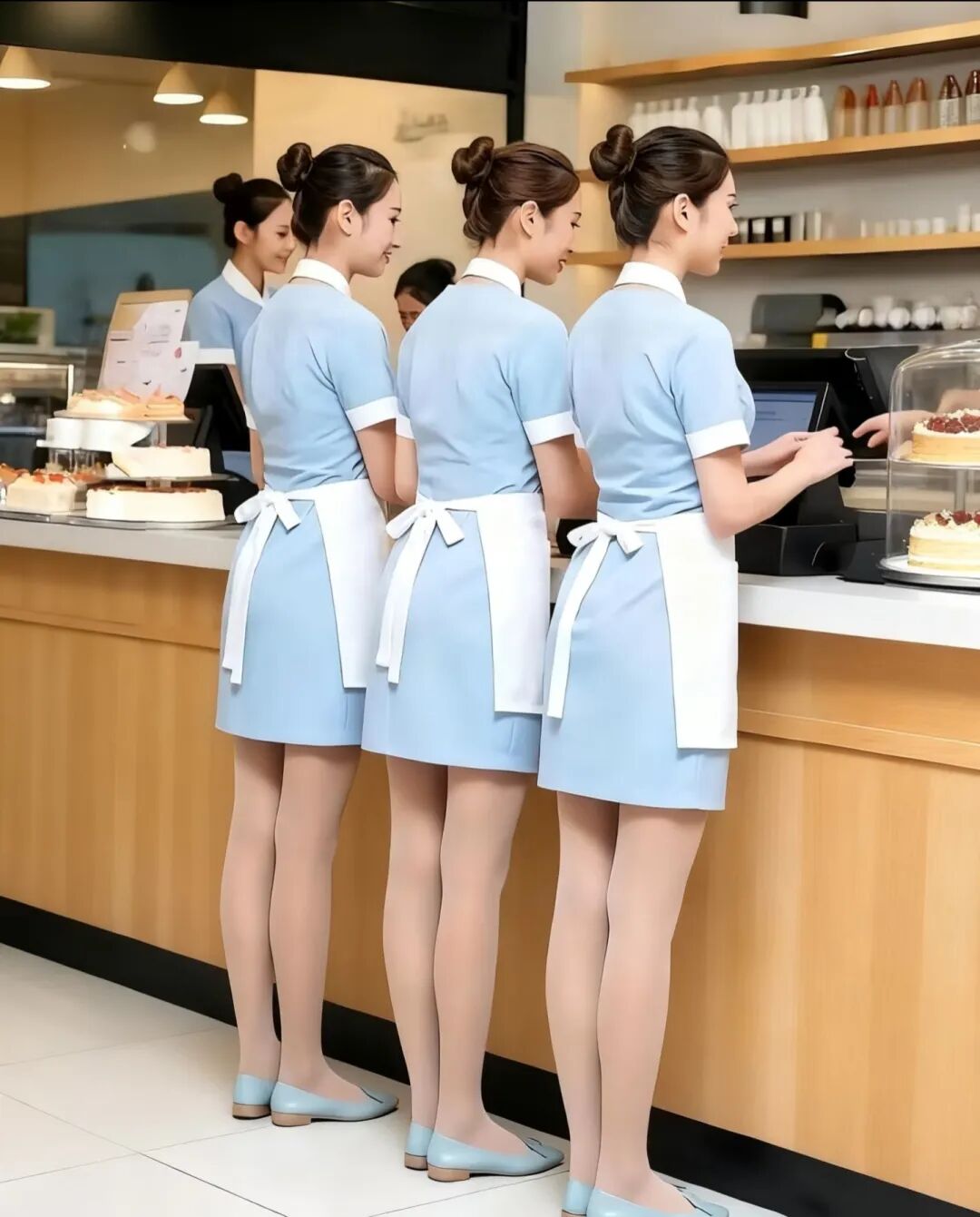 但在日常工作中,却不得不穿着裙装和高跟鞋工作,甚至在雨天穿着高跟鞋上下飞机,导致多人滑倒。