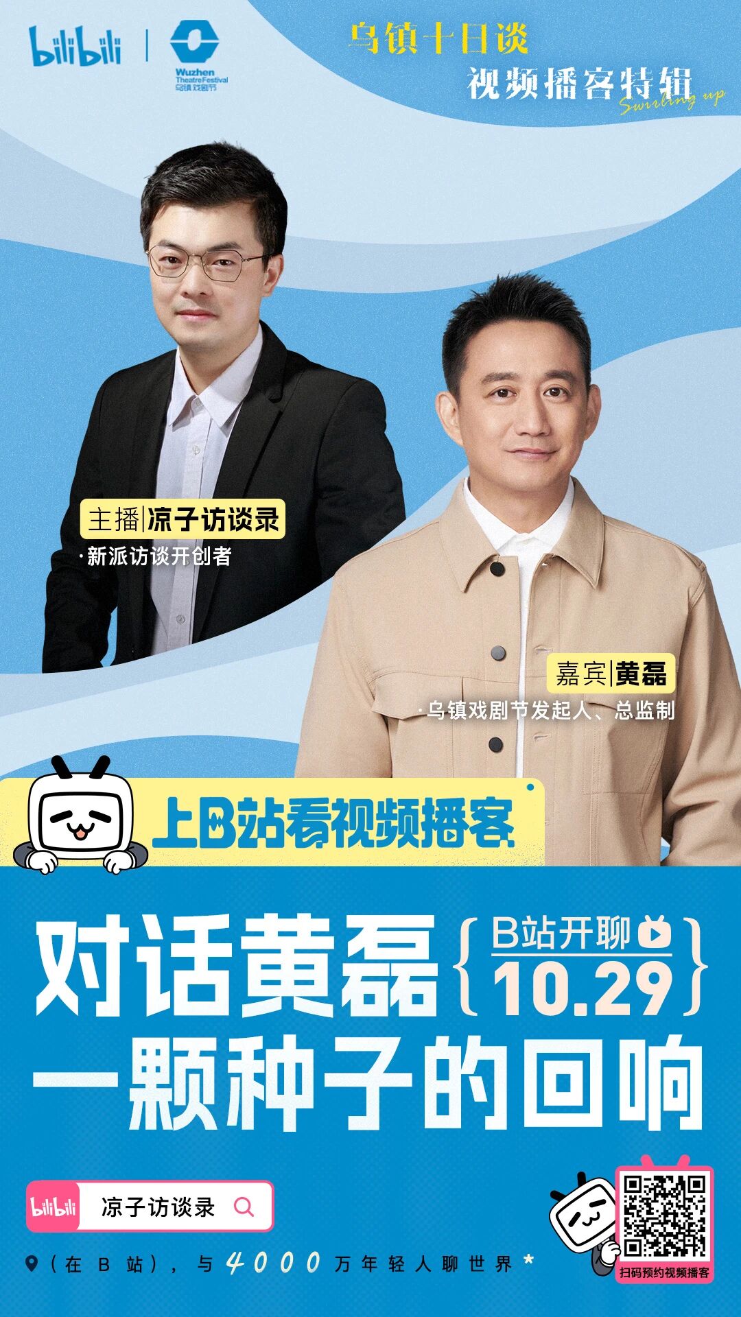 「乌镇十日谈」延续了乌镇戏剧节的文化基因,并融入B站的青年文化生态。企划邀请了孟京辉、赖声川、黄磊、丁乃竺等乌镇戏剧节的核心主创,与@刘擎教授、@凉子访谈录、@张尔达等B站知识区、文化区优质UP主组成对话阵容。
