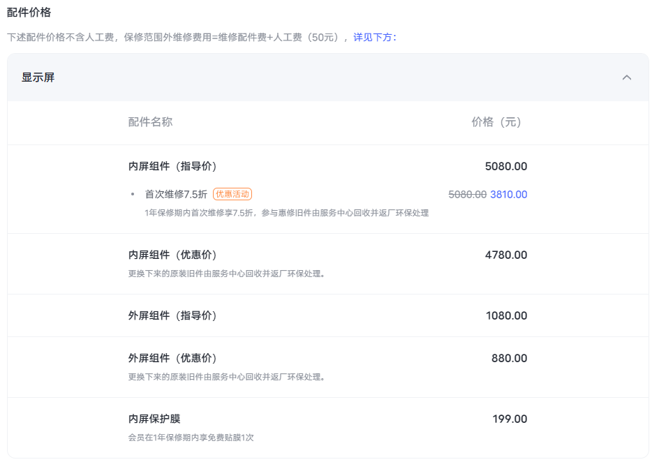 图/某品牌折叠手机换屏费用