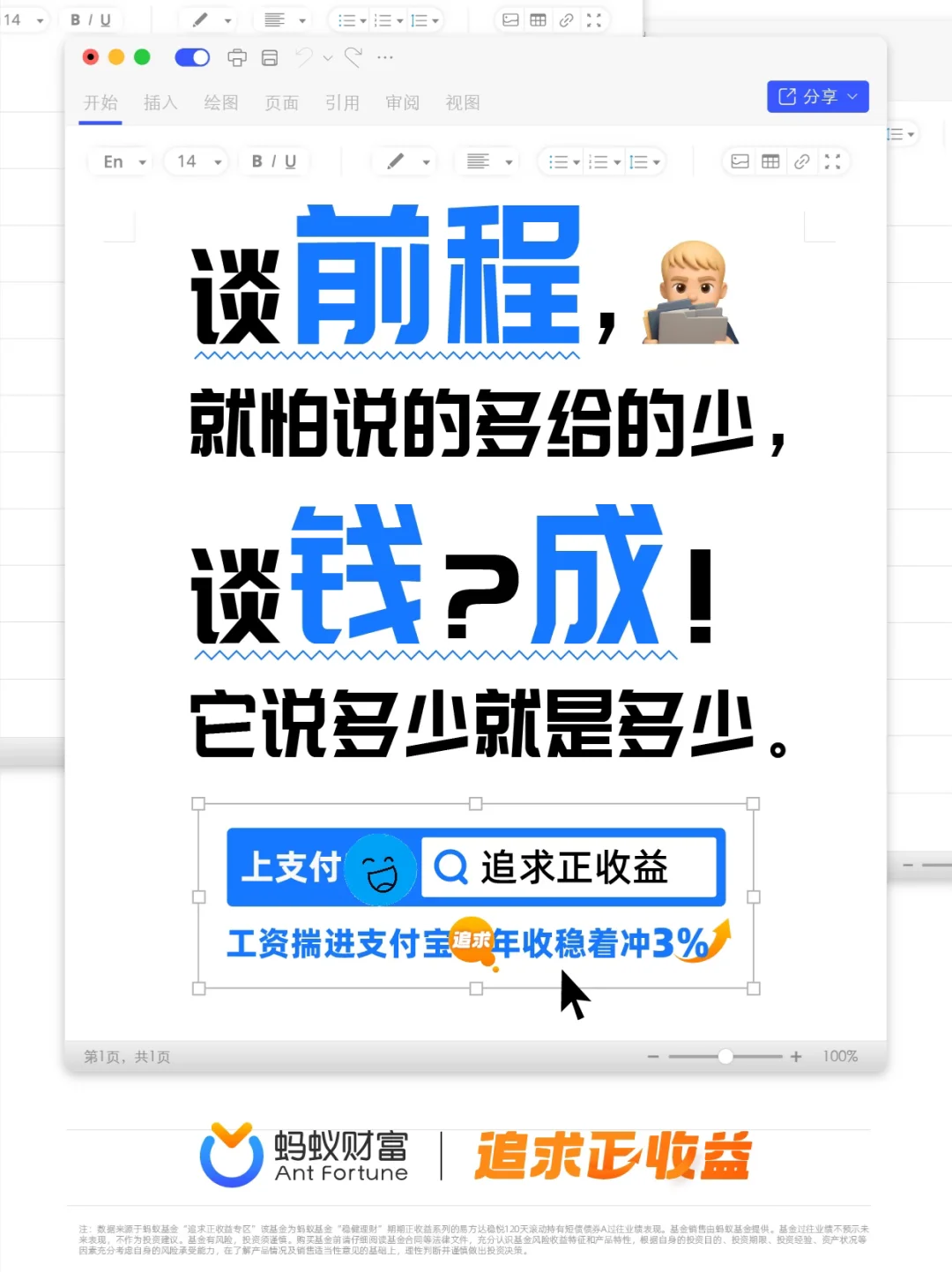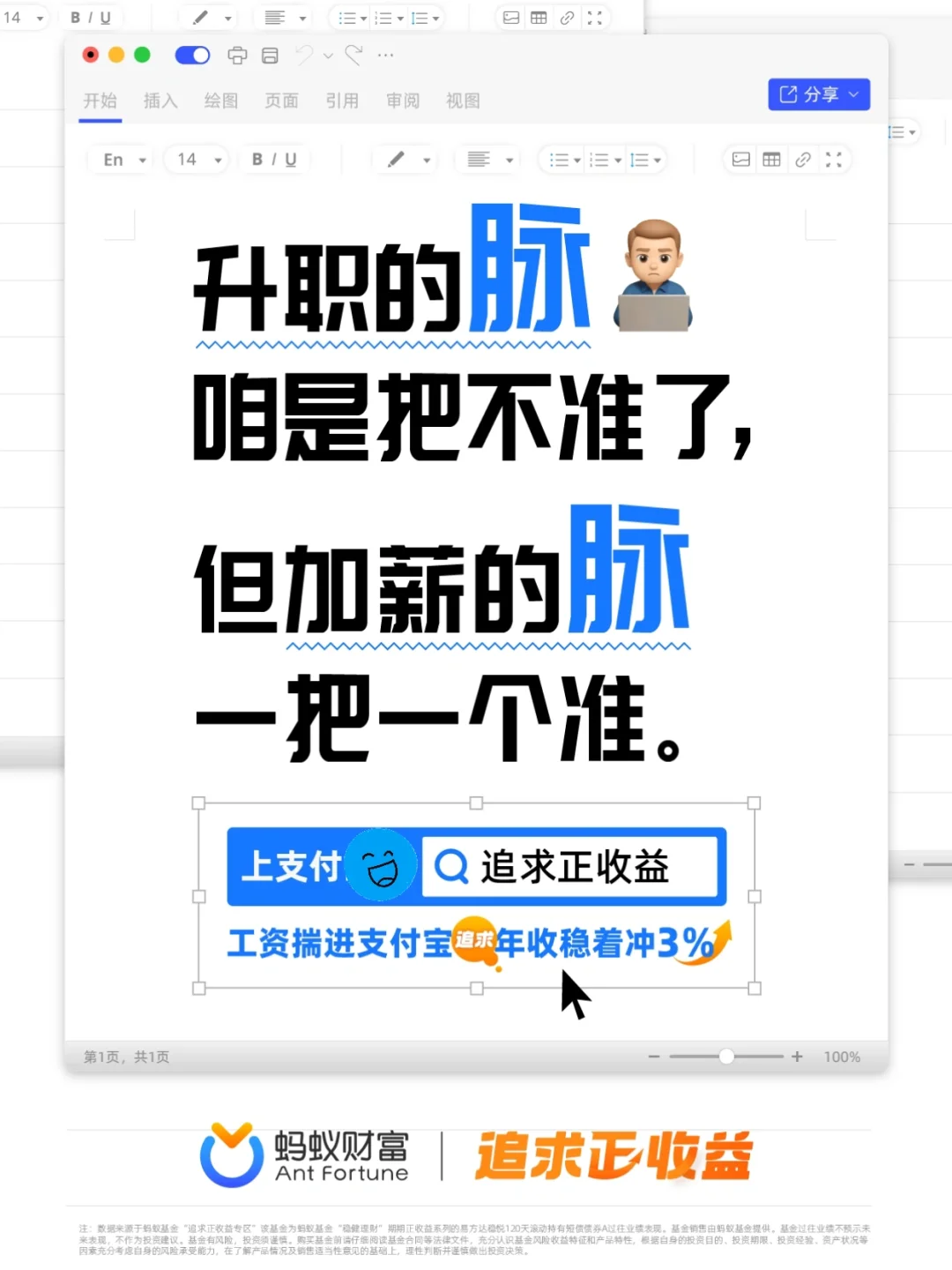 蚂蚁财富用一波精准的社交传播,将“追求正收益”的产品卖点,巧妙变成了打工人的“加薪外挂”。