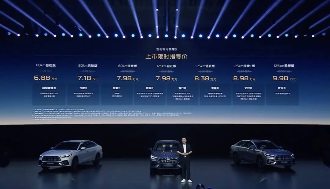 刚刚,吉利银河星耀6正式上市,有60公里续航和120公里续航两个版本,7款配置,官方指导价为万7.48万起。当然,吉利银河的保留节目,如果你在11月30号之前锁单,价格还能再下探6000元。