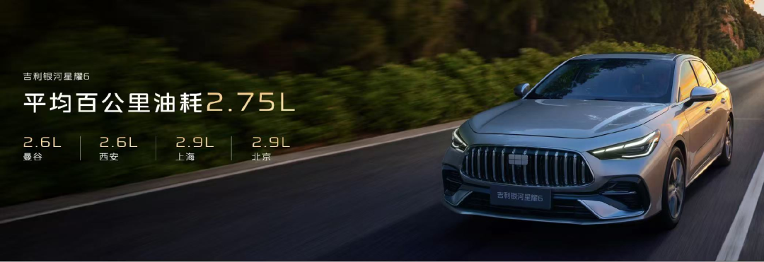 发布会前不久,吉利银河在号称全球“堵城”的曼谷跑了一圈,实测吉利银河星耀6的馈电油耗仅为2.6L/100km。此外,在西安、上海、北京等城市进行实测中,油耗稳定在2.6L-2.9L之间。