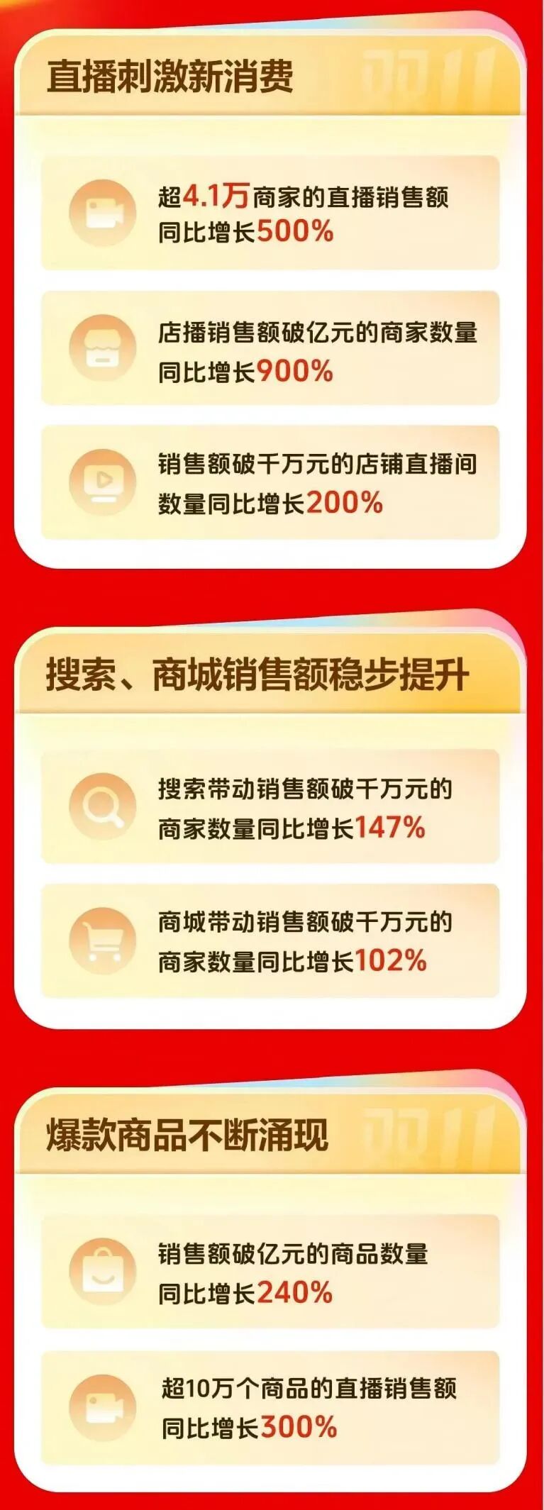 据抖音电商数据,10月9日至19日期间,4.1万商家直播销售额同比增长500%,粉丝100万以下的中小达人贡献了80%的GMV。