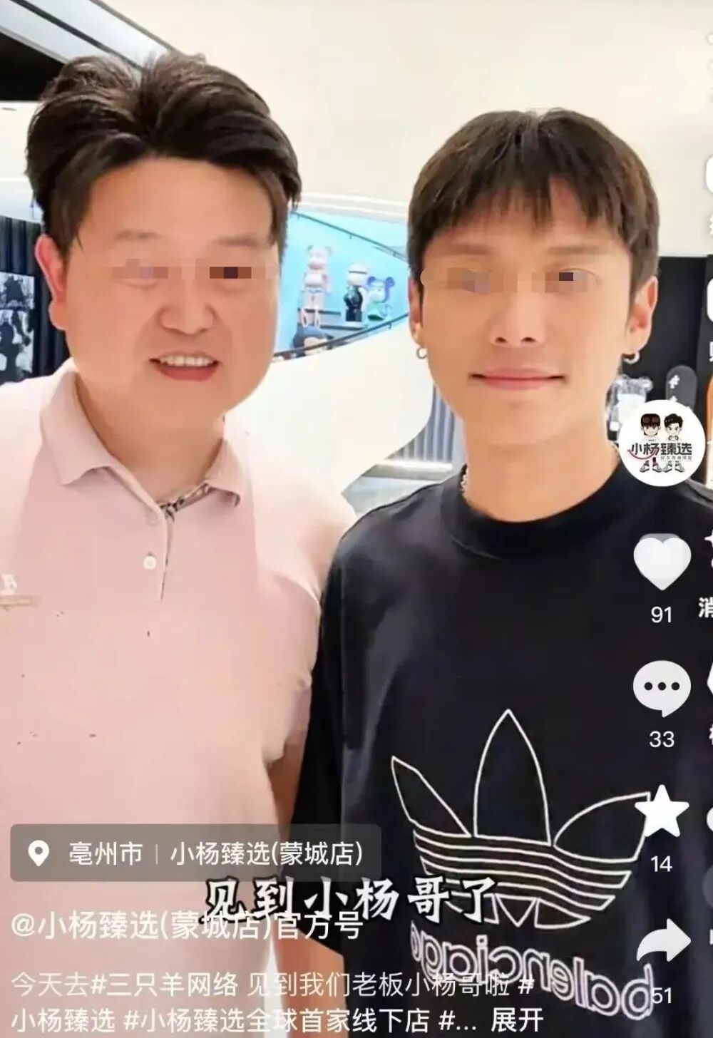 与此同时,一个名为“小杨臻选(蒙城店)官方号”的抖音账号上线,晒出与三只羊签约的视频,还特意合影留念。