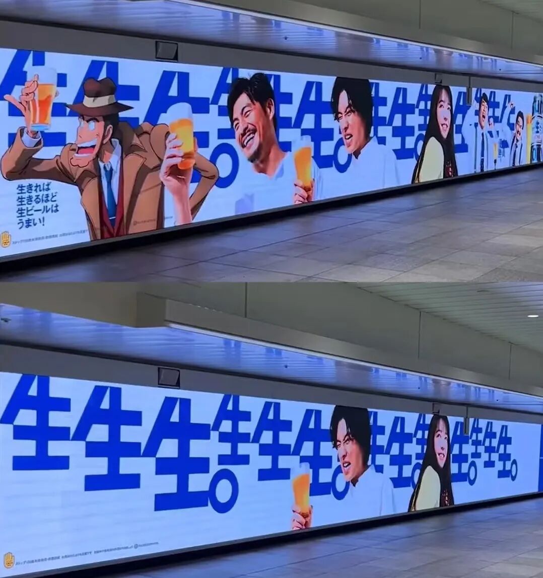 2023年,日本三得利生啤就投放了一组极为相似的地铁广告,不断强调“生生生生生生生生生生生”,简单粗暴却令人印象深刻。