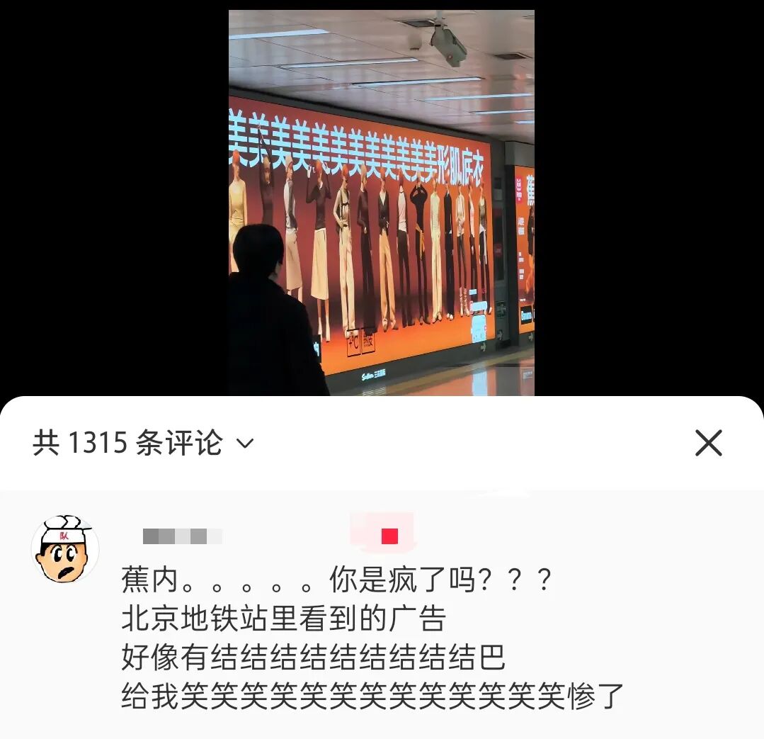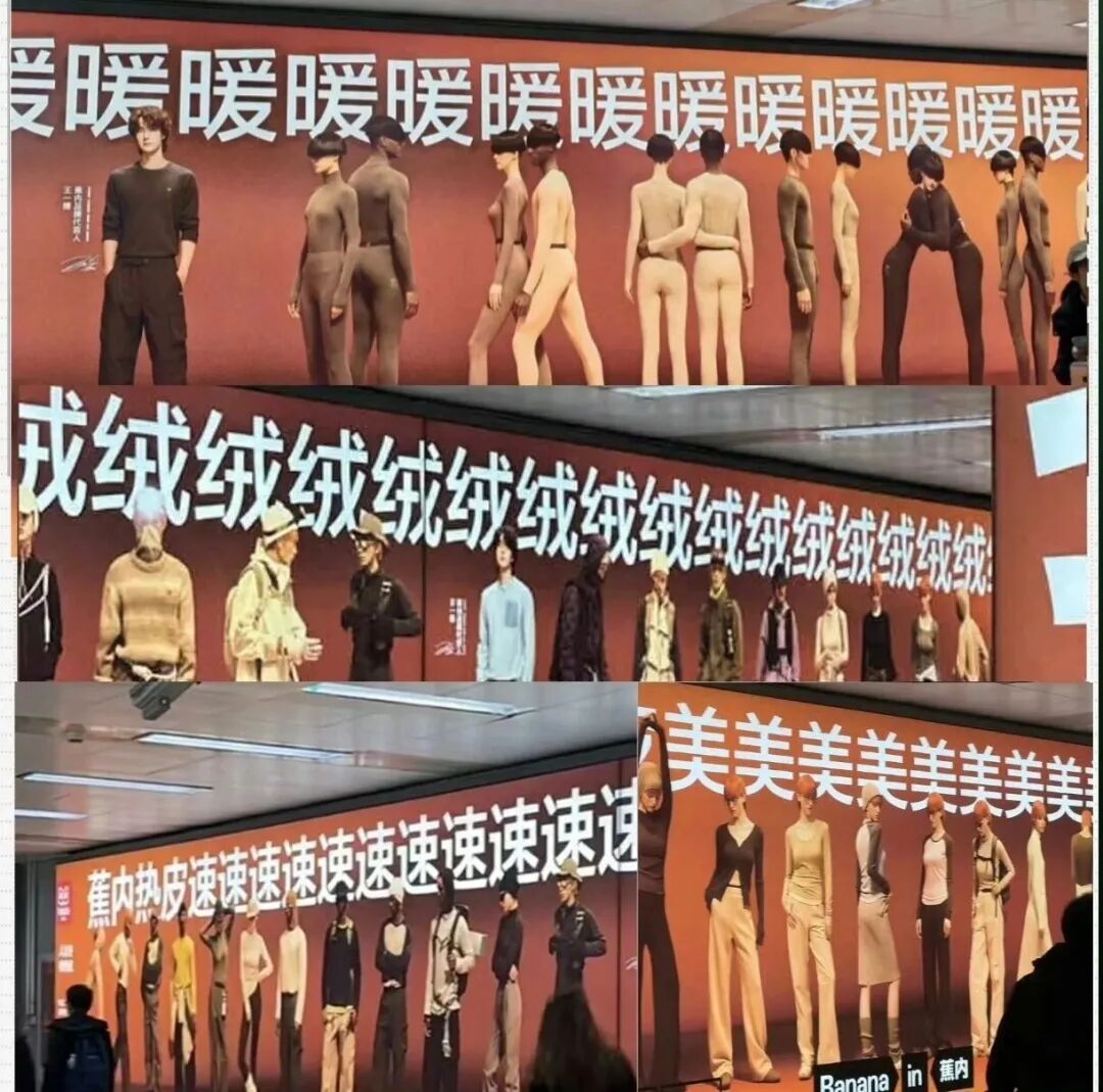 最近蕉内在北京王府井地铁站投放的一组广告,就吓坏了不少路人。