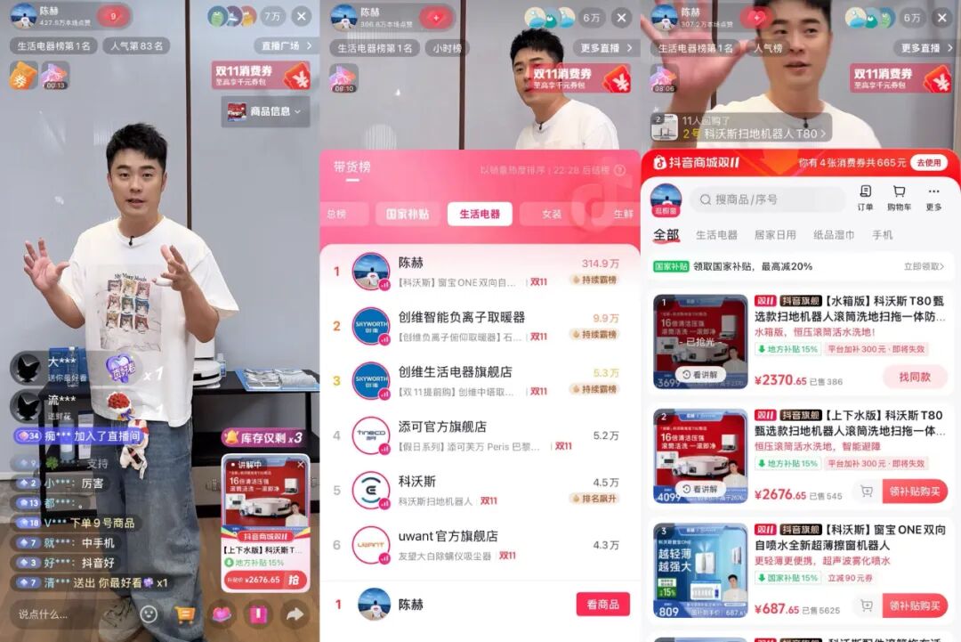 他基于自身真实生活场景和使用体验进行讲解,消弭了观众对于产品的疑虑,带来了5100万元的单日成交额,也使得科沃斯扫地机器人成为双11期间最受欢迎的小家电品牌之一。