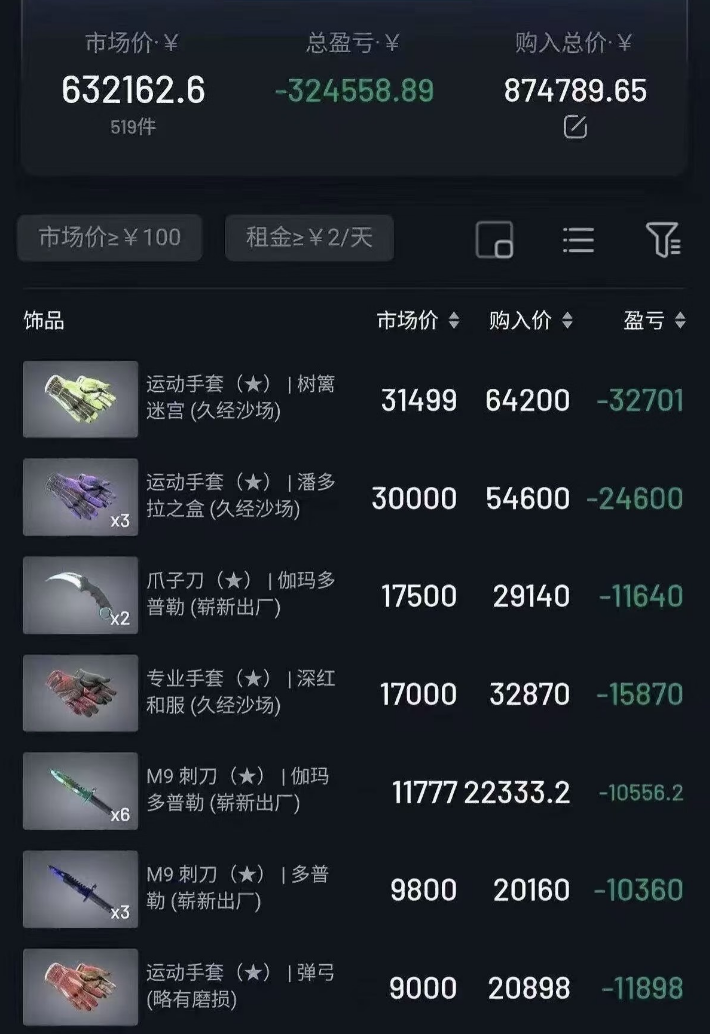 二手市场上,蝴蝶刀、稀有手套等装备价格直接腰斩。