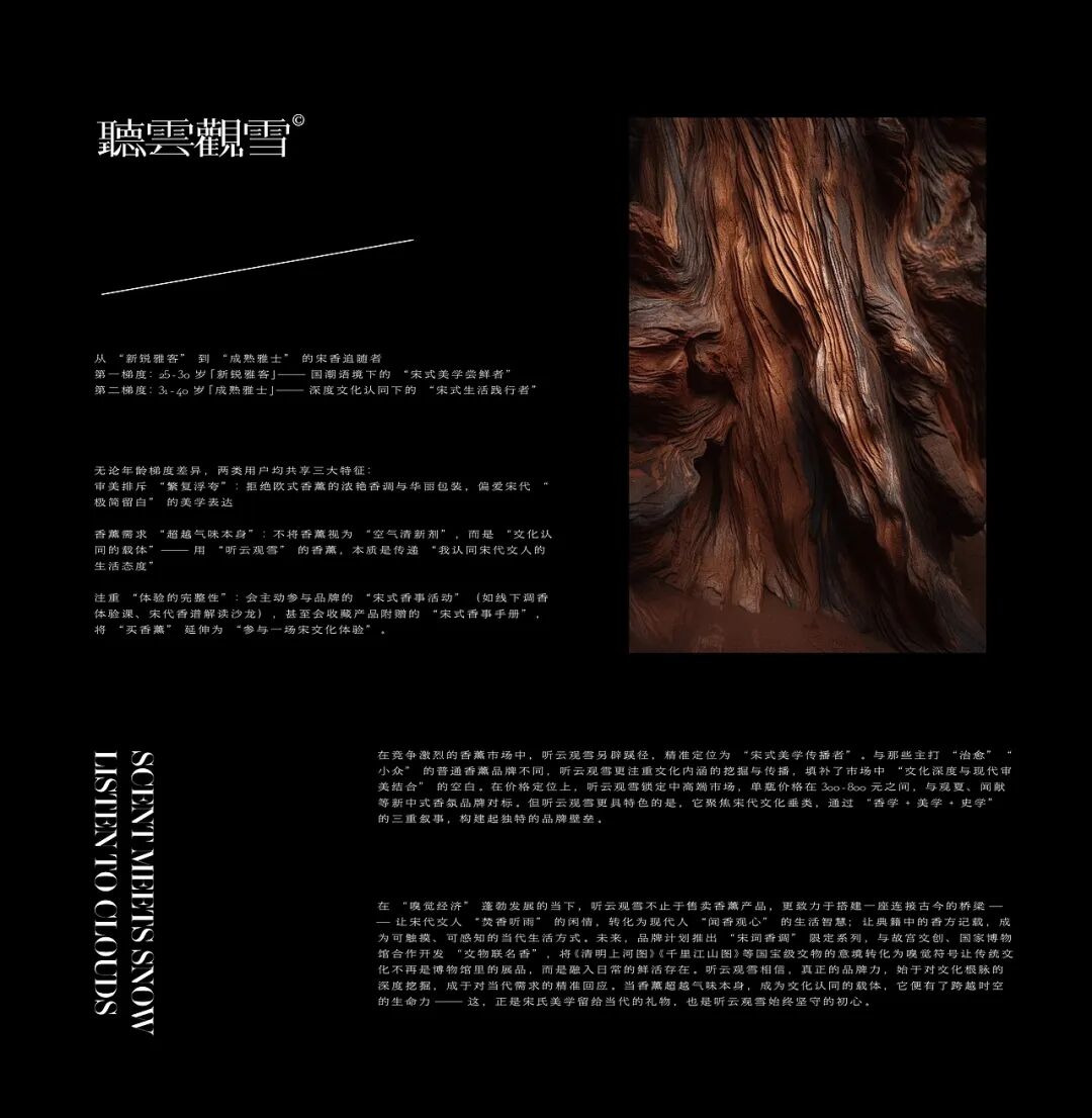 “听云观雪” 不是单纯的香薰品牌,而是 “宋式美学生活的传递者”。品牌以宋代香事为魂,以现代产品为载体,让 “焚香、品生活” 的宋式雅趣,走进更多都市人的日常。