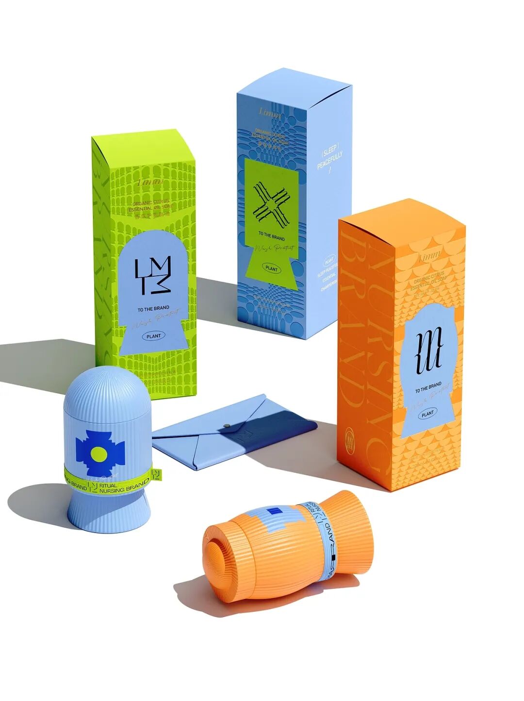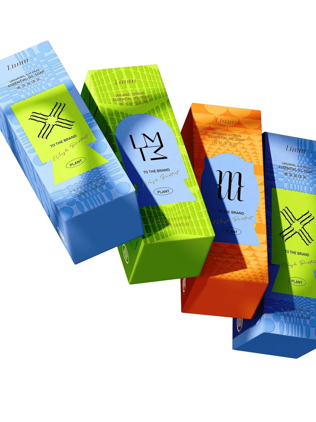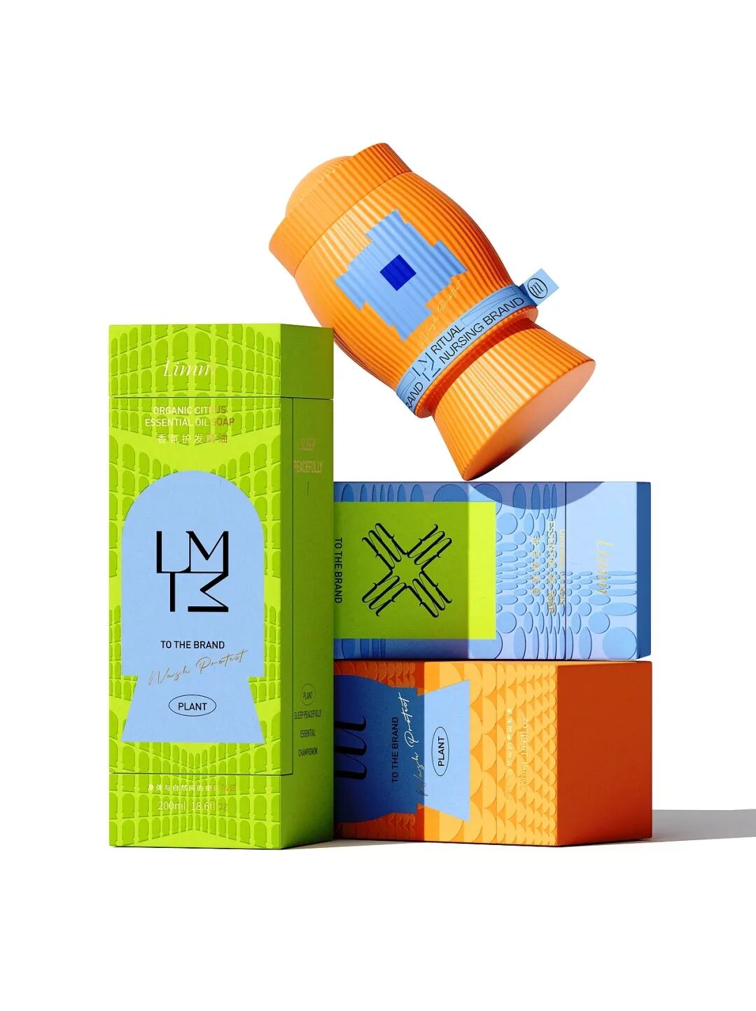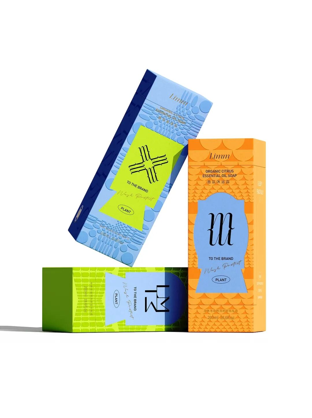 接着看到这三款植物香氛,包装分别采用荧光绿、亮蓝、橙黄的高饱和色彩,形成强烈视觉冲击,既与外盒的低调形成 “反差萌”,又快速区分不同香型。
