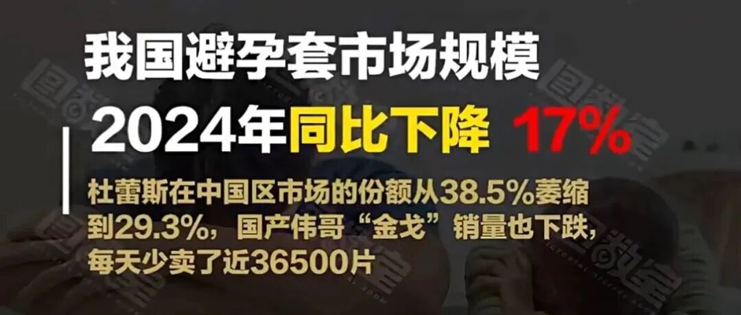 如全球最大避孕套制造商康乐公司销售额两年内下降 40%,杜蕾斯在中国线上市场份额从 50% 缩至 29.3%,超 7.8 万家相关企业倒闭。