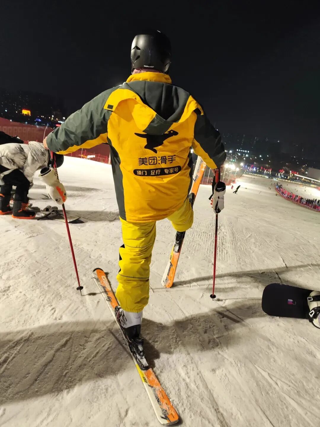而当外卖服走进滑雪场、成为潮人穿搭,它也成了一种符号。