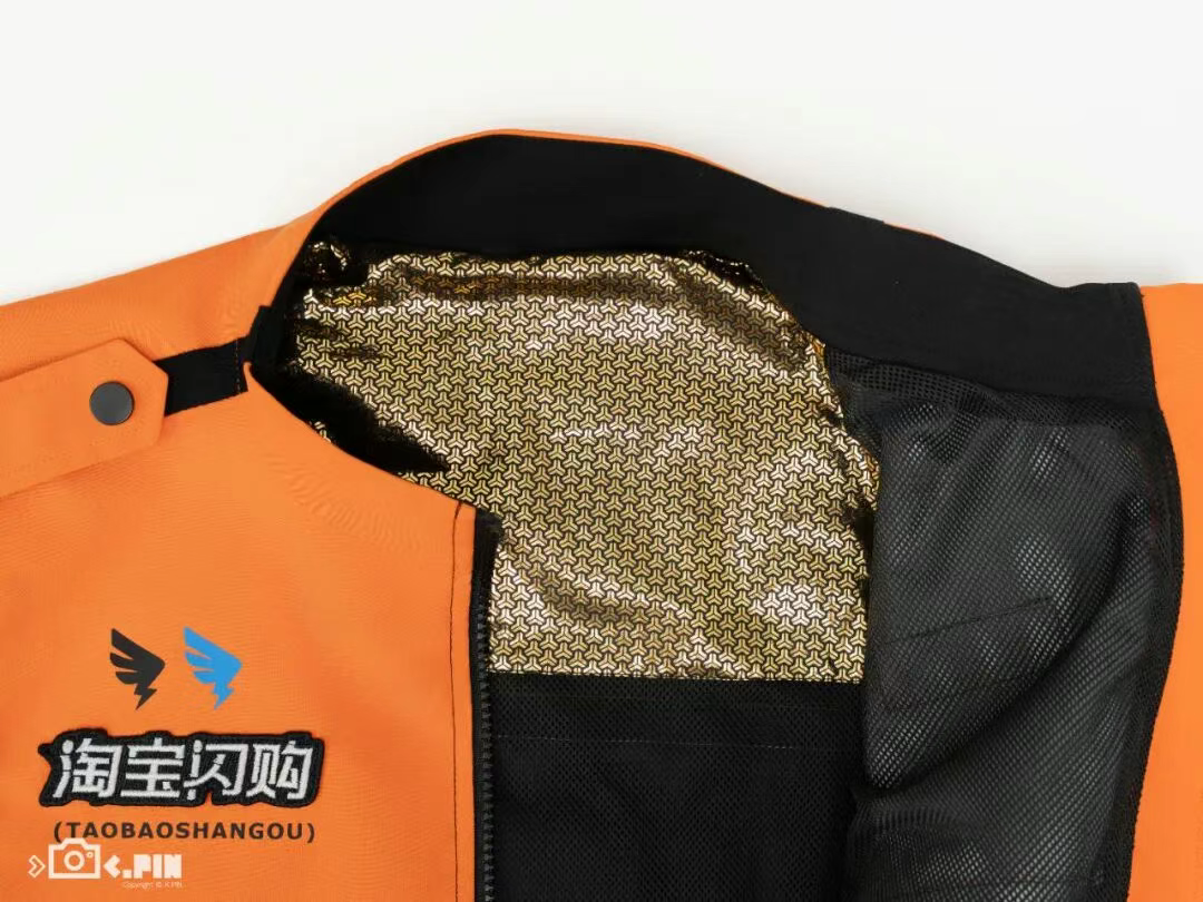背部使用高科技面料石墨烯材质,低温时能保暖,高温时能散热;右袖还设有紧急信息袋,用来存放写有自己身份信息、紧急联系人、血型等内容的卡片。