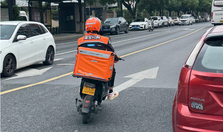 以前是蓝骑士,现在换上这橙黑新工服,感觉下一秒就能风驰电掣地去参加F1比赛了。(送餐路上何尝不是另一种形式的F1赛道呢)