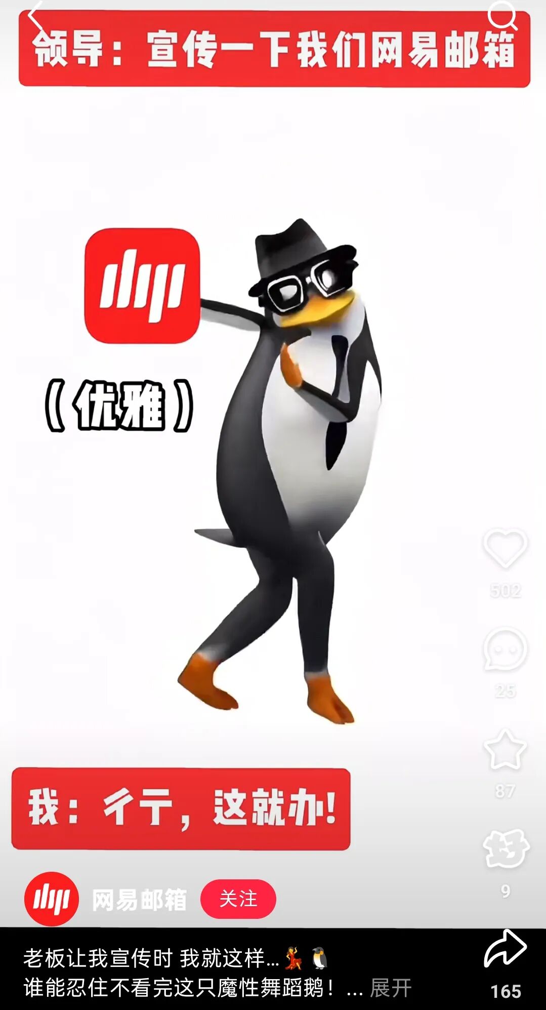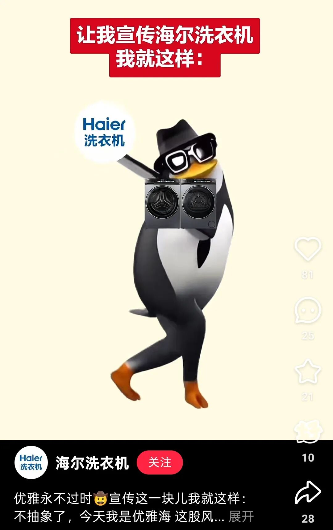 另外,AI技术降低了创作门槛。借助AI工具,普通用户也能轻松让静态企鹅跳起舞来,这种技术普惠极大地激发了全民二创的热情。