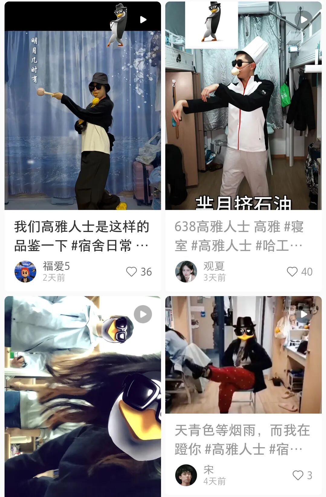 “高雅企鹅”的影响力早已突破屏幕限制,向现实世界全面渗透。在动物园,游客们拍摄企鹅后,会自然而然地给视频配上“高雅人士”的文案和音乐。