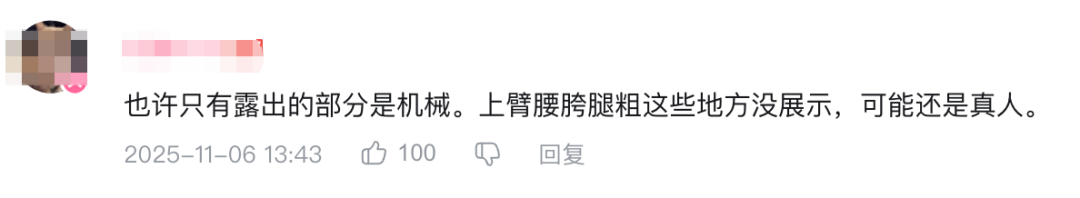 也许只有露出的部分是机械。上臂腰胯腿粗这些地方没展示,可能还是真人。