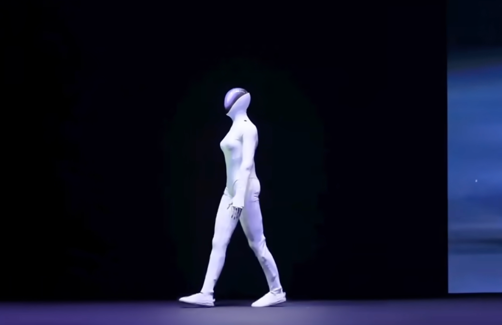再看动作,它几乎没有人类惯有的“松弛感”。步态笔直得惊人,没有一丝歪斜。