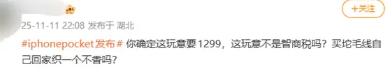 “你确定这玩意要1299,这玩意不是智商税吗?买坨毛线自己回家织一个不香吗?”类似的质疑在社交平台上不绝于耳。
