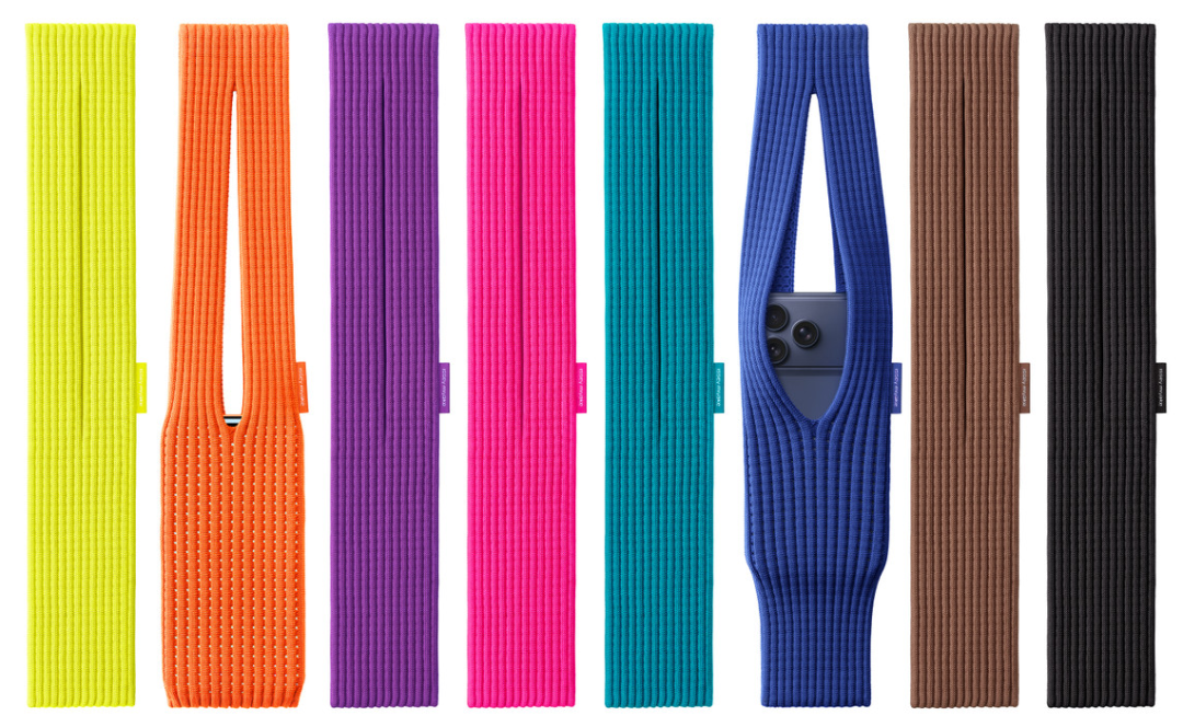 苹果官方对iPhone Pocket的描述相当唯美:设计灵感源自三宅一生标志性的“一块布”理念,采用独特的3D针织一体结构,可适配所有iPhone以及其他随身小物。