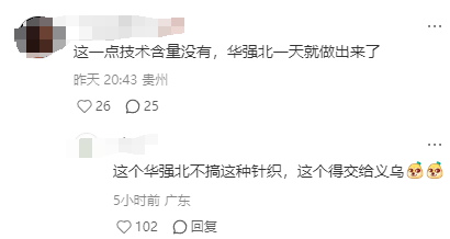 底下神回复:“这个华强北不搞这种针织,这个得交给义乌。”