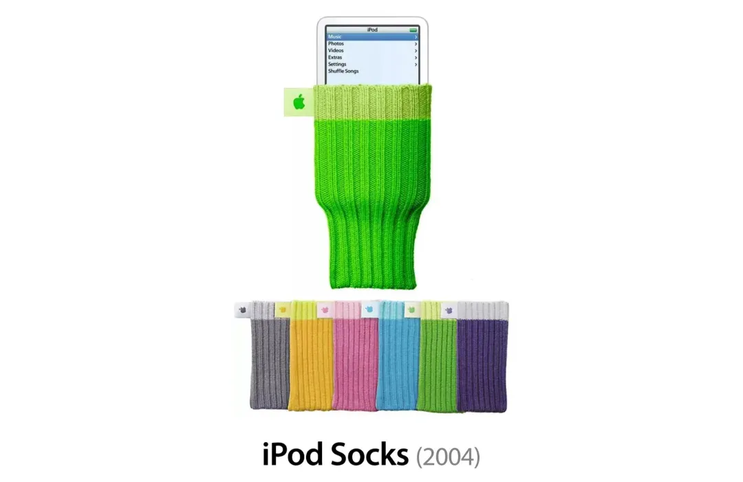 最经典的当属2004年推出的iPod Socks,一套五颜六色的针织袜,专为保护iPod设计。
