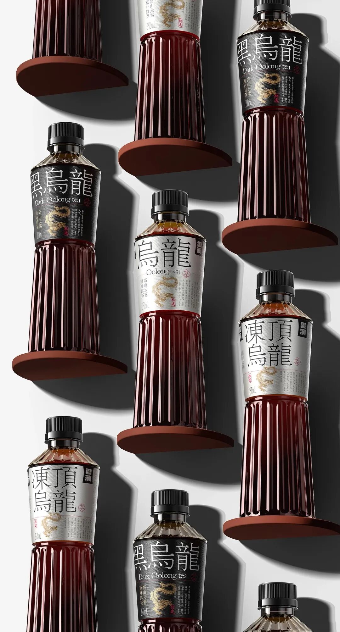 总的来说,东方风格是茶饮料与消费者建立文化连接的纽带,而乌龙茶的多元特质又为设计师提供了施展创意的舞台,这两款包装正是在这样的背景下,以各自独特的东方创意诠释着乌龙茶的韵味与价值,既满足了市场对文化认同的需求,也展现了设计在茶饮领域的无限可能。共勉~