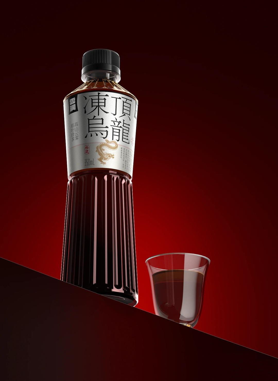 这款乌龙茶包装,设计团队首要考虑的,就是希望让“茶”跳出货架同质化,在传递出茶的东方属性的同时,又要适配现代快消场景。