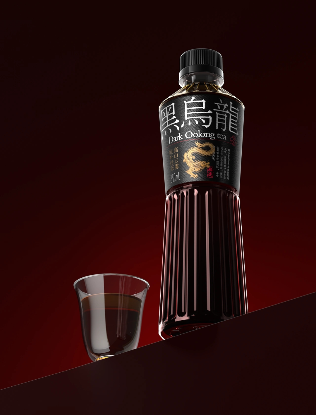 这款乌龙茶包装则走大气典雅的东方轻奢风格,设计摒弃传统茶饮包装的清新淡雅,旨在构建一种神秘、深邃且充满精致的美学。整体灵感来源于深邃的夜空与东方的龙,龙作为东方文化的经典符号,象征着尊贵与祥瑞,暗喻其茶汤醇厚、韵味悠长的顶级品质。