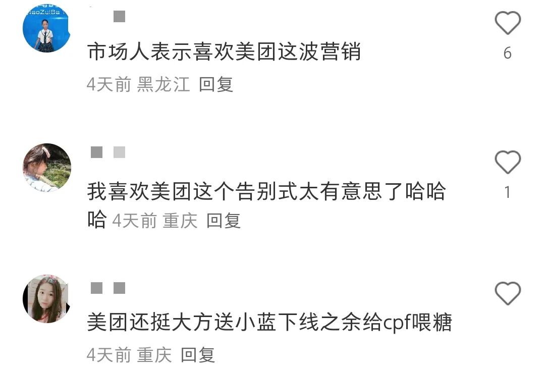 就在大家还在消化这一消息时,美团却率先 “搞事情”。美团外卖 APP 上线了一场别出心裁的 “致敬蓝朋友” 活动。