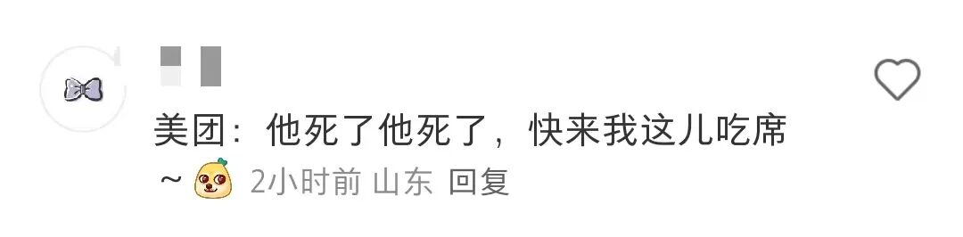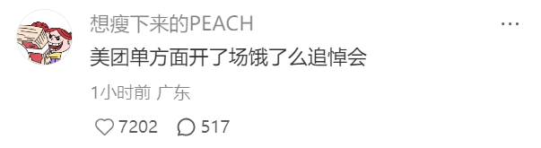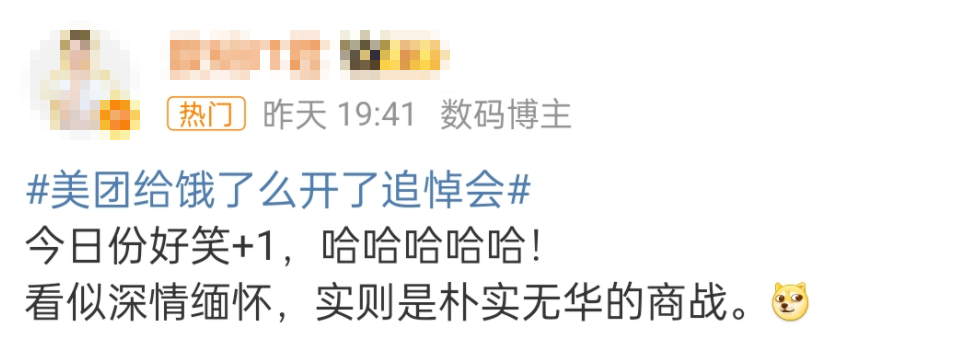 有人笑称:“美团这是单方面给饿了么开了一场盛大的追悼会,还邀请大家一起来吃瓜。”