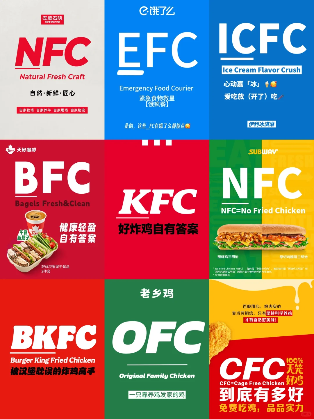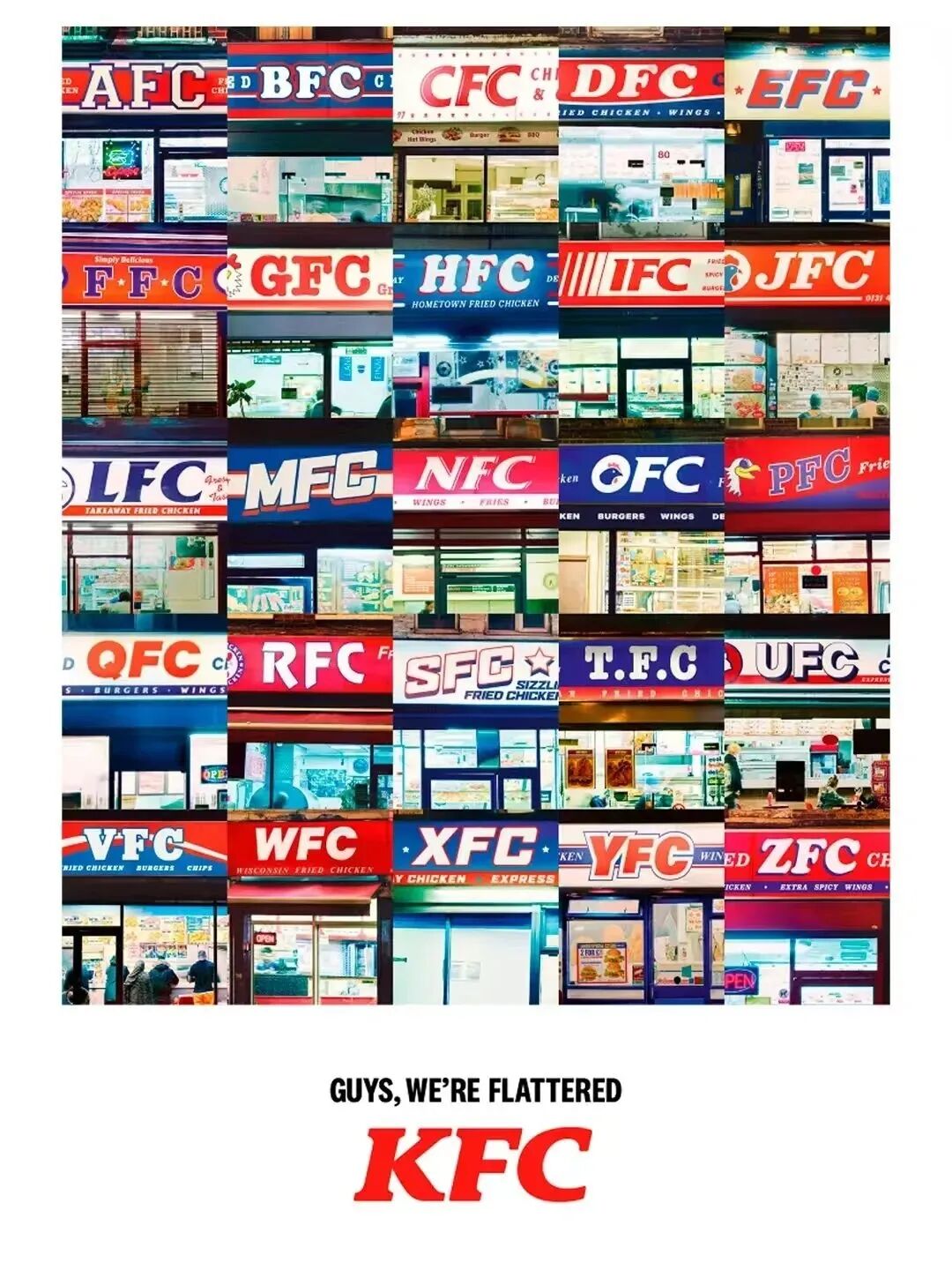 KFC一口气掏出字母全家桶,用山寨衬托出KFC的绝对“正宫”地位。