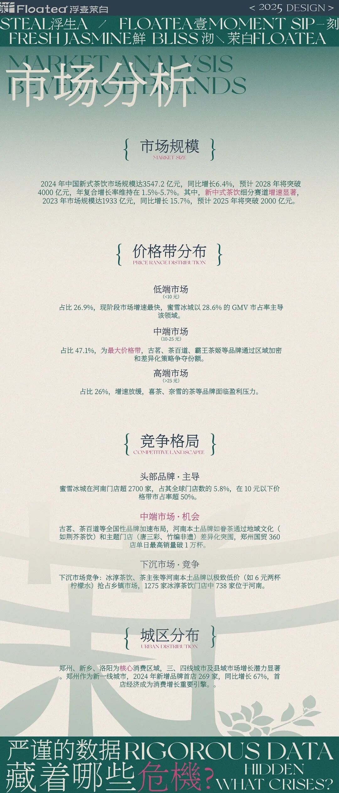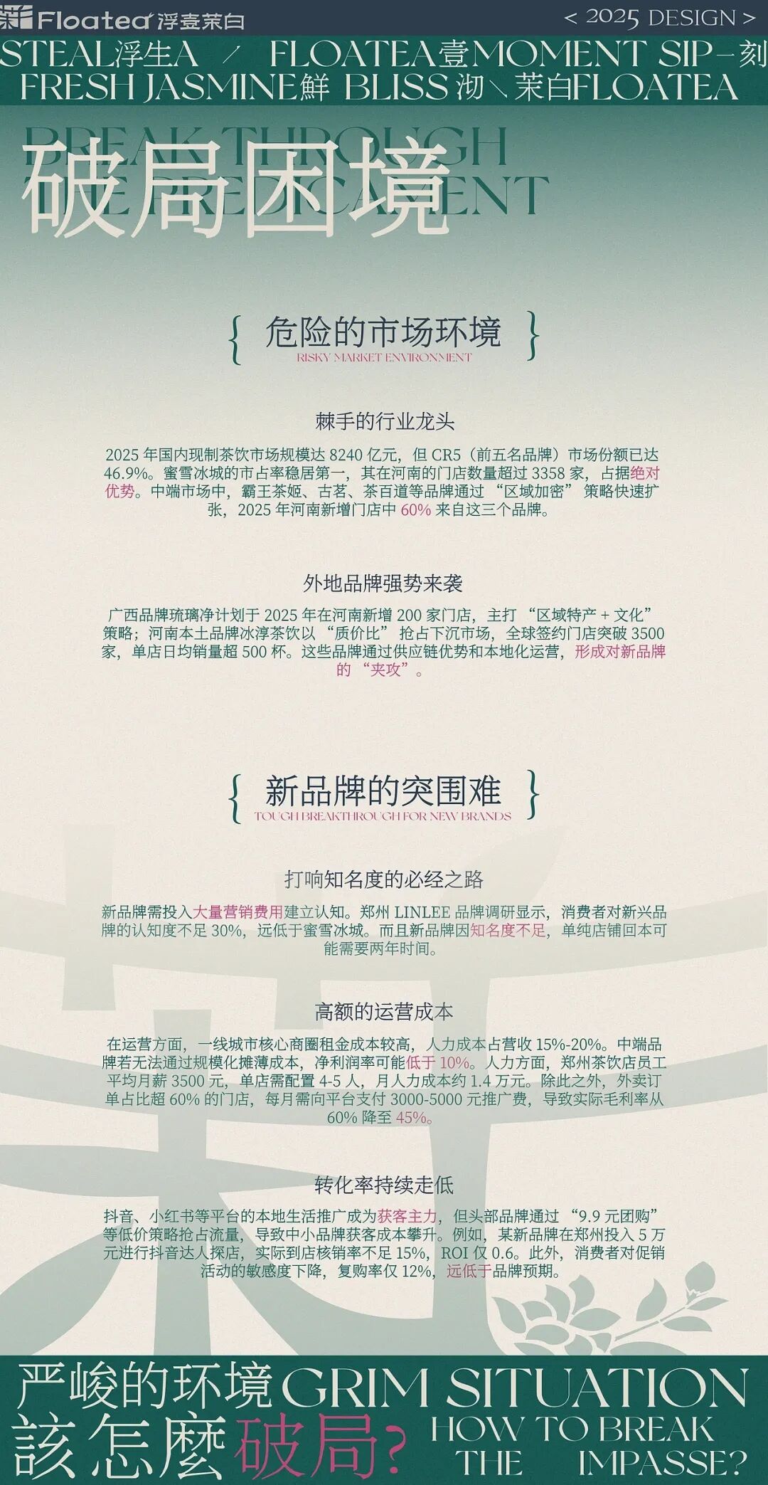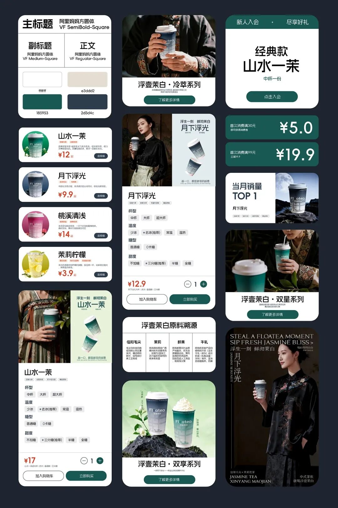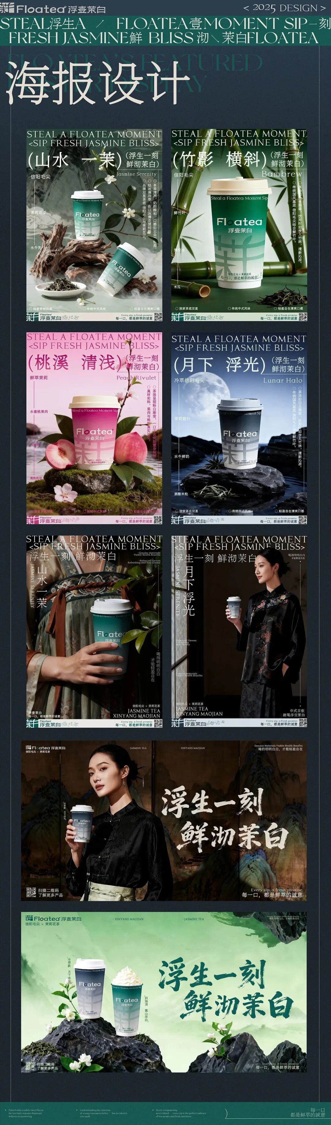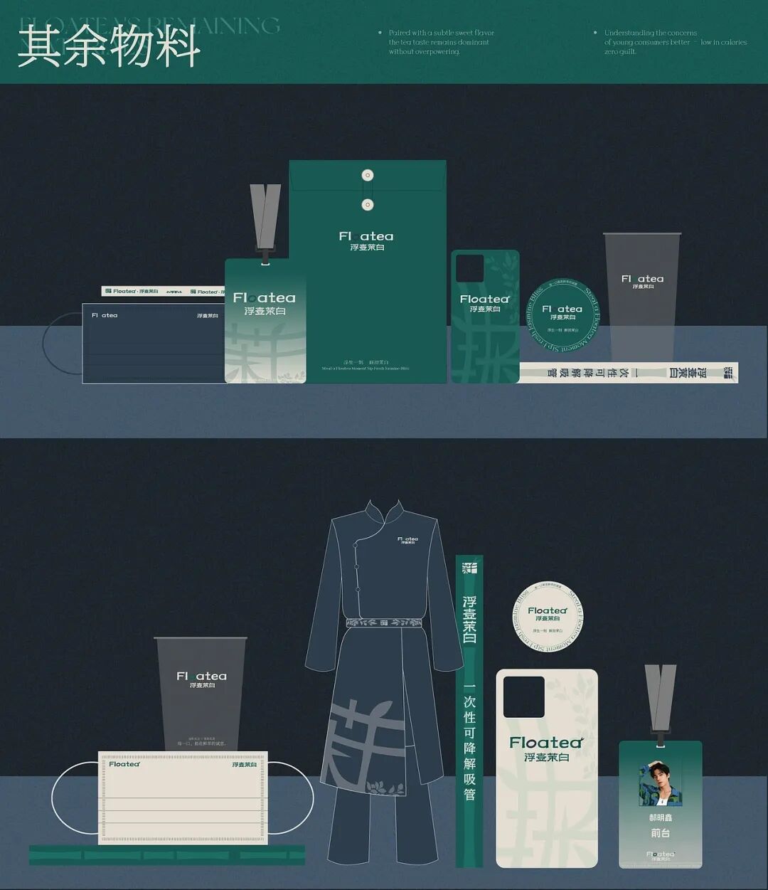 品牌命名中的“浮”呼应浮生的松弛感,“壹”代表对鲜萃诚意的专注与唯一,“茉白”则直指核心风味--茉莉的清雅与茶汤的澄澈。英文名Floatea将Float与Tea融合让东方意境与国际表达自然衔接。