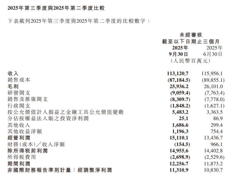 总收入1131亿元,连续4个季度超过千亿;经调整净利润为113亿元,同比猛增80.9%,创下历史新高。