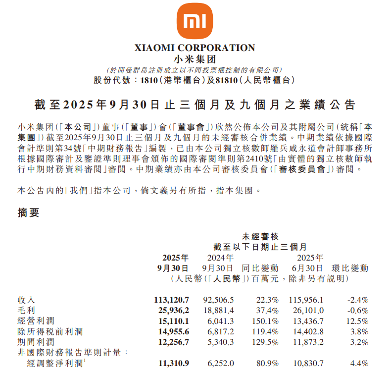 11月18日,小米集团交出了一份近乎完美的季度成绩单。