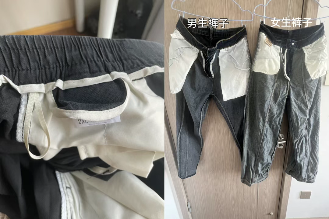 就拿牛仔裤来说,有网友对比过,女生一百多块买的牛仔裤,内里走线乱糟糟的;男生在拼多多几十块买的牛仔裤,不仅走线有包边,拉链衬布还细心地染成了和牛仔裤一样的颜色。