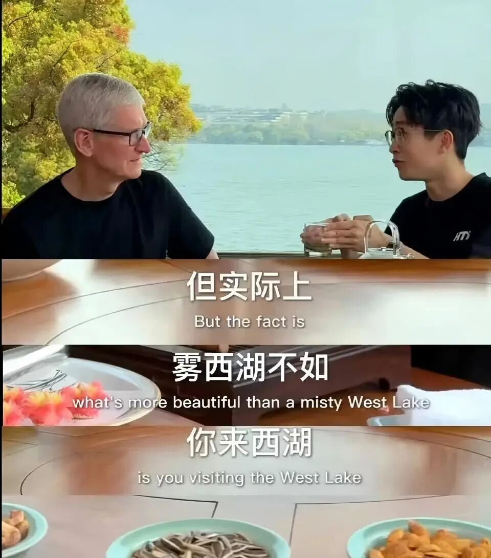 更讽刺的是,不久前何同学还在西湖为苹果CEO蒂姆·库克精心沏茶,态度谦逊恭敬,像是另外一个人。