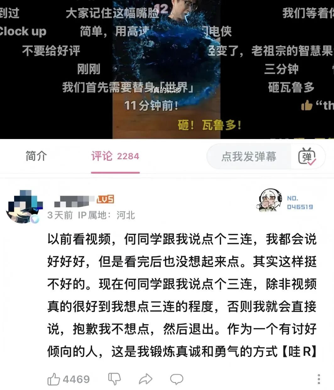 而他的B站评论区也被统一的“拒绝三连”文案刷屏: