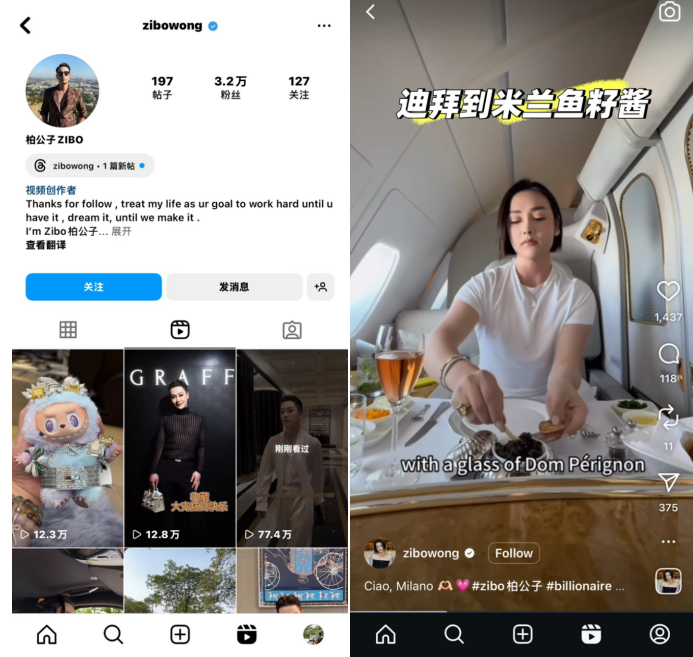 这些炫富内容迅速为他积累了近300万粉丝,其中不乏将他的生活方式视为人生理想的年轻受众群体。