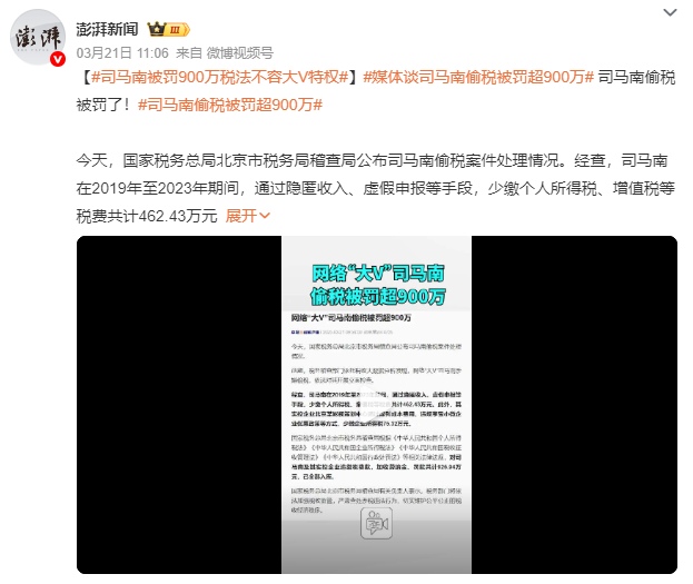 以“反美先锋”人设走红的司马南,2025年因瞒报收入偷税数百万元,被央视点名曝光。