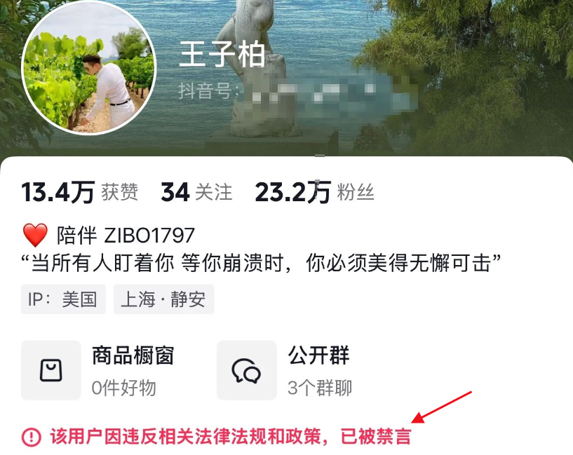 数小时后,"王子柏"账号的直播信息消失,当晚22时左右被封禁。