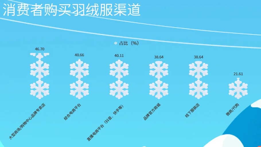 从购买行为来看,消费者对高端羽绒服的获取路径仍以线下实体渠道为主。iiMedia Research(艾媒咨询)调研数据显示,46.70%的消费者倾向于在大型商场或购物中心的品牌专卖店购买羽绒服,这一比例居各渠道之首,其次才是综合电商平台和直播电商平台。