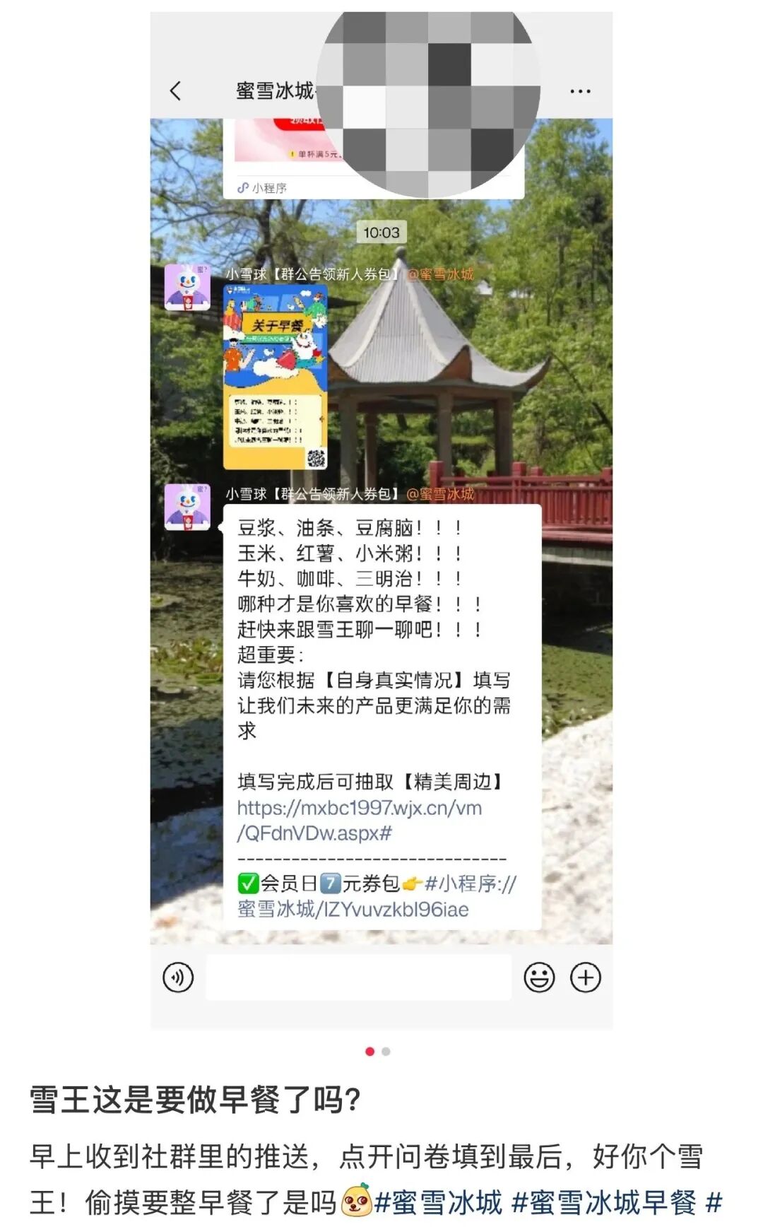 最近,作为雪王忠实消费者,我的社交媒体被一张蜜雪冰城问卷刷屏了。