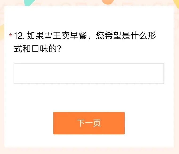 最后一个问题更是灵魂拷问:"如果雪王卖早餐,您希望是什么形式和口味的?"