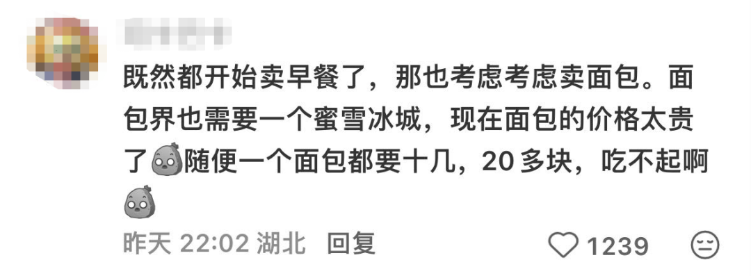 而对于真正的“早餐刺客”面包,网友更希望雪王把价格打下来。