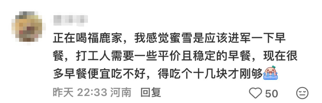 有人说"要是雪王出早餐,我肯定天天买。现在公司楼下的早餐动不动就十五块以上,吃不起啊。"