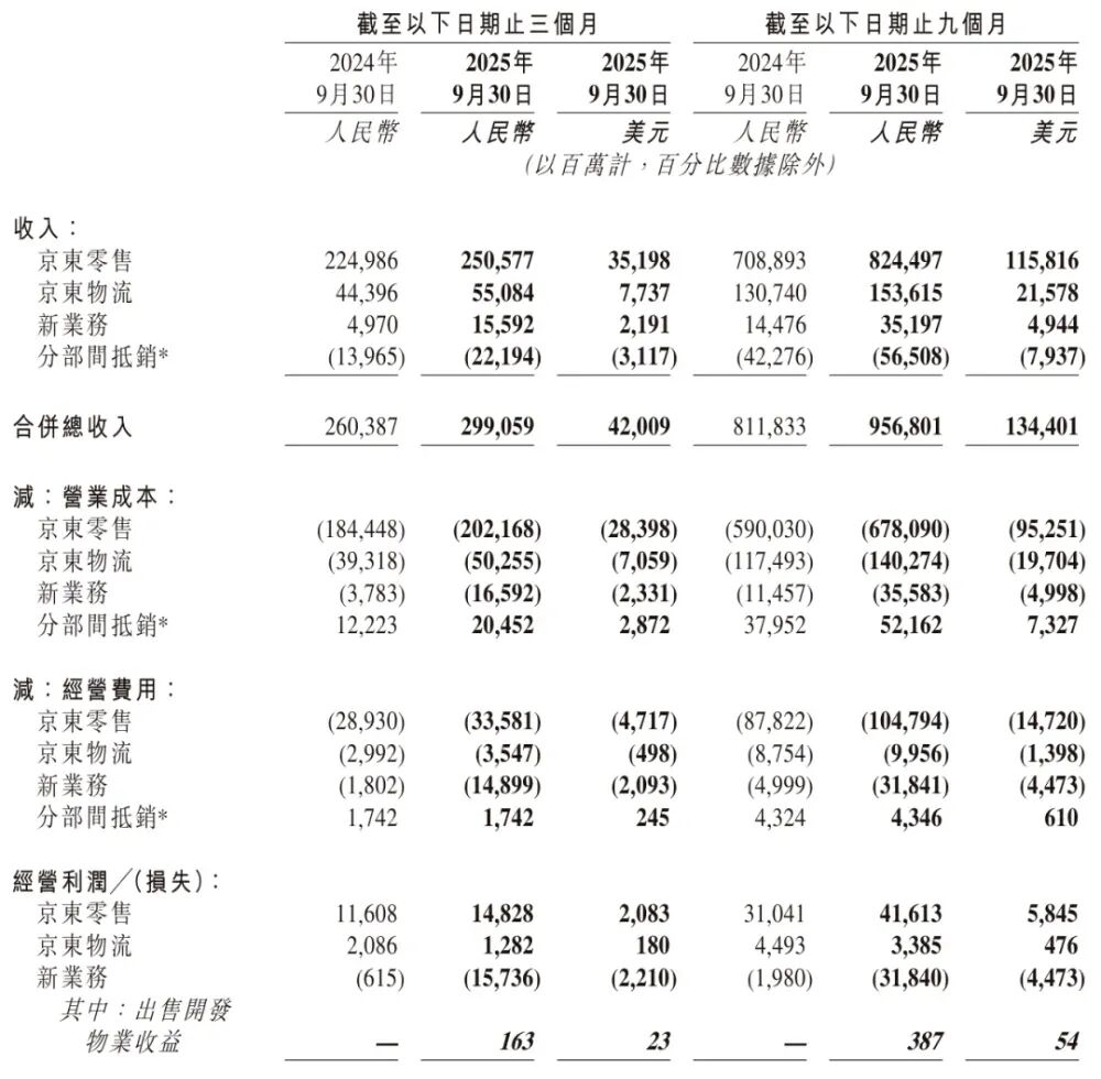 11月13日发布的2025年第三季度财报显示,京东当季收入2991亿元,同比增长14.9%,其中新业务营收155.92亿元,同比增长213.7%。